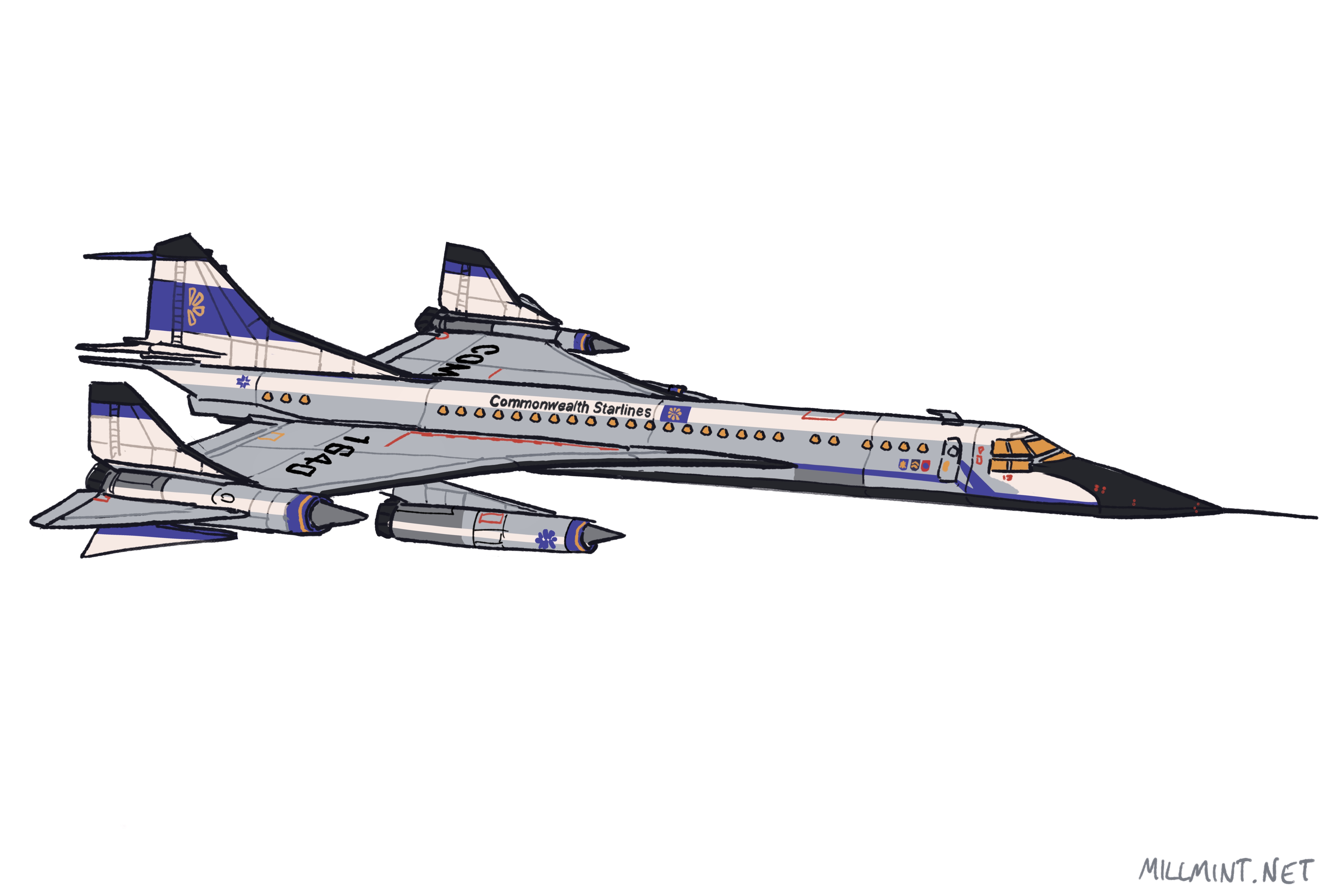 The Meteor Starliner is a class of transatmospheric single-stage-to-orbit spaceplane in service with Commonwealth Starlines. It was the third type of commercial spaceplane introduced in the world, and entered service in 2043. They depart from the Vekllei World Astroport in Ascension, Vekllei on revenue service each day, mostly transporting workers and tourists to the Vekllei Lunar Territories. The starliners were manufactured by the Astro Division of the Government Aircraft Factories.