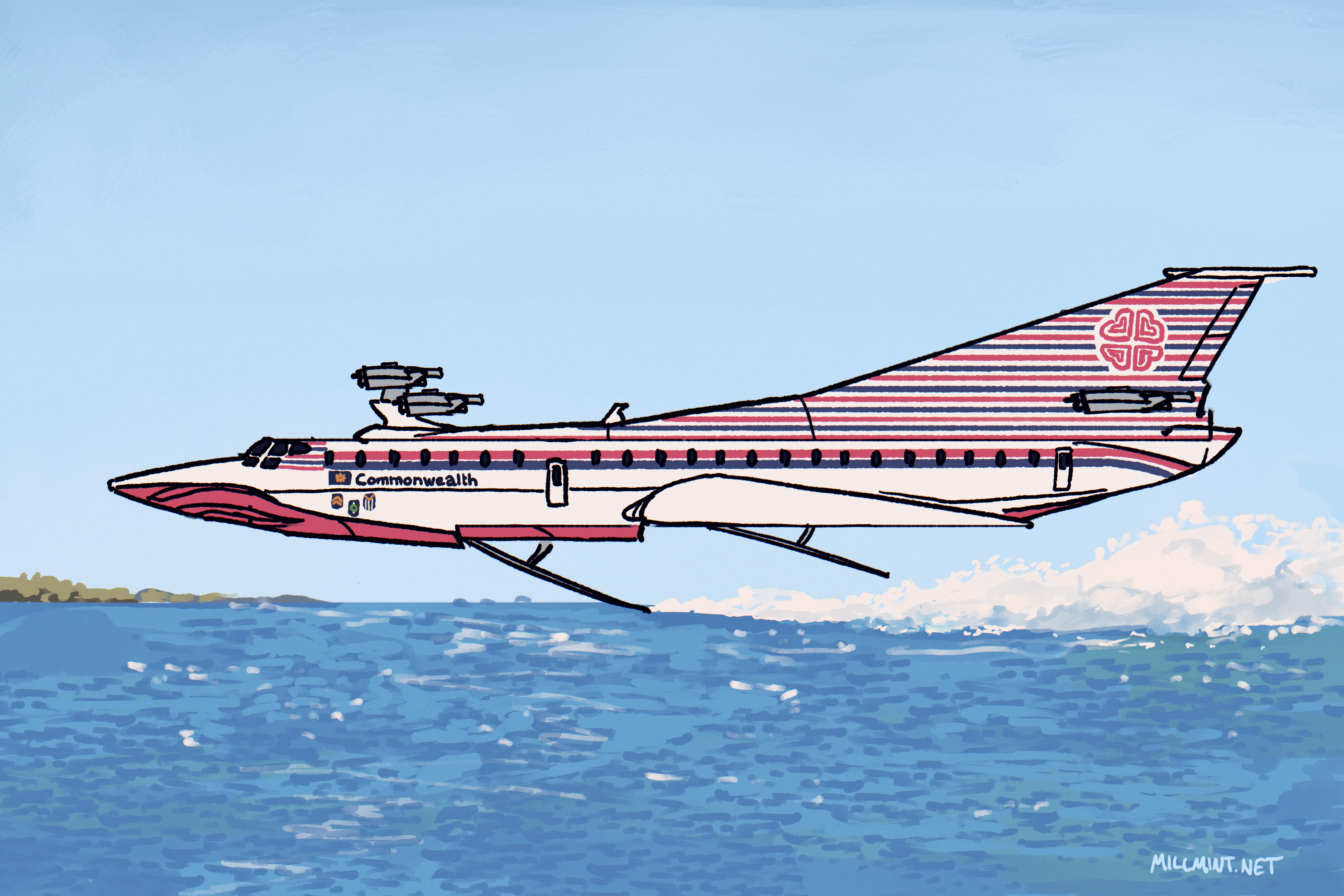 The Gull-class ground effect craft is a passenger ekranoplan jointly operated by Commonwealth Lines and Commonwealth Airways for inter-island transport across medium distances in the Atlantic and Caribbean. The craft fills a gap between conventional ferries and aircraft, providing fast connections on routes where passenger volumes don’t justify full airline service. It’s particularly useful in the scattered island chains of the Kalina and Lucaya Commonwealths, where frequent departures matter more than raw speed.