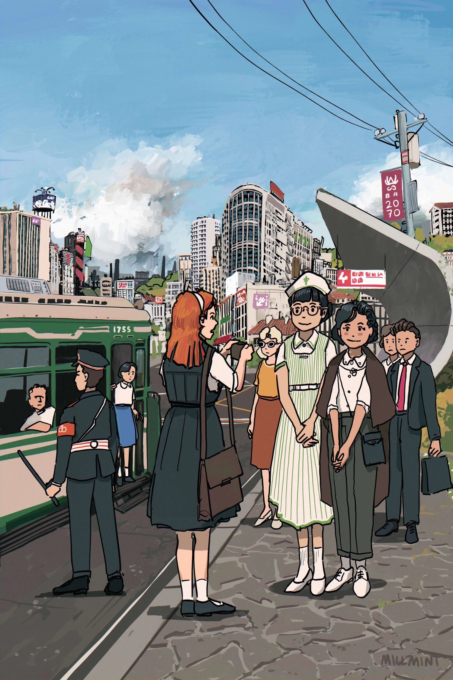Finally, you might have notices a certain set of recurring characters. The girl with short dark hair is Tzipora Desmoines, the character of utopia in this project. Her adoptive father, Baron, is bearded and wears half-framed spectacles. Her friend, Cobian, wears round spectacles and her hair in a ponytail. Their mutual friend, Moise, is heavy-set and has curly hair. Together, they represent a broad demographic of Vekllei people. Baron is descended from Nordic caucasians; vikings from Vekllei’s initial settlement. Tzipora and Cobian are descended from both inuits and Scandinavians, in the population explosion that followed Inuit settlement in the Danish territory. Moise is descended from Greek immigrants in the tide of immigration that followed the immediate postwar era. Although there are Vekllei people of colour, they make up a minority of the population.
