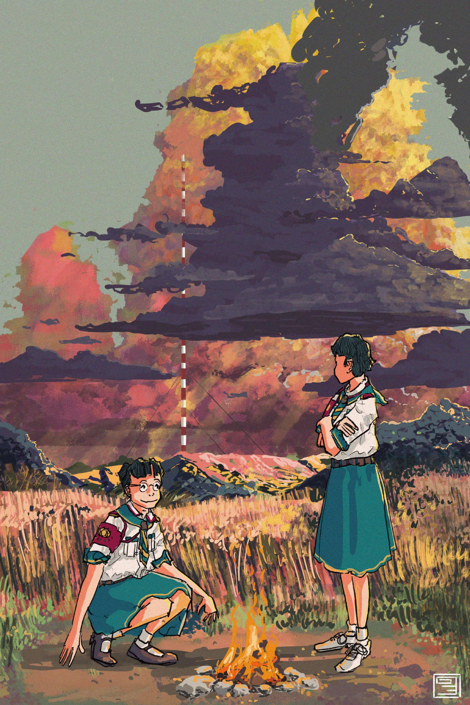 They started the fire first, figuring they’d have more enthusiasm for the tent when they were warm. Warm sunrays played on the field-grasses around them.