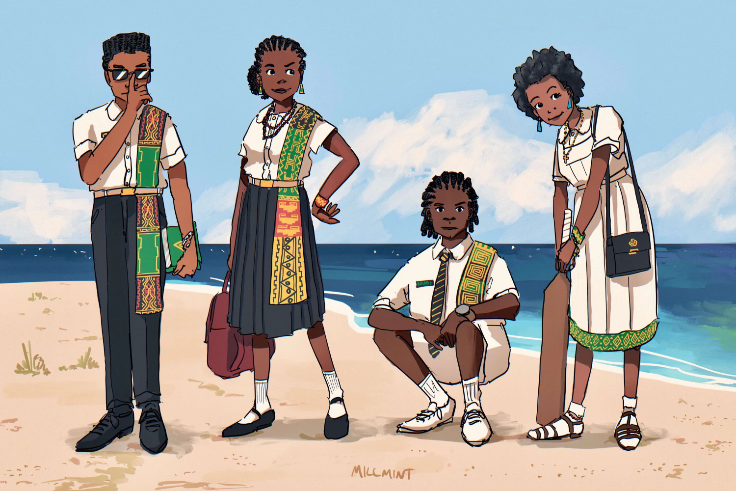 The education of young people is largely a burden of the Commonwealth, and so curriculums and resources are developed at an international level. This picture demonstrates student uniform in the Kalina Isles, and its fusion of standard Commonwealth items and local cultural features.