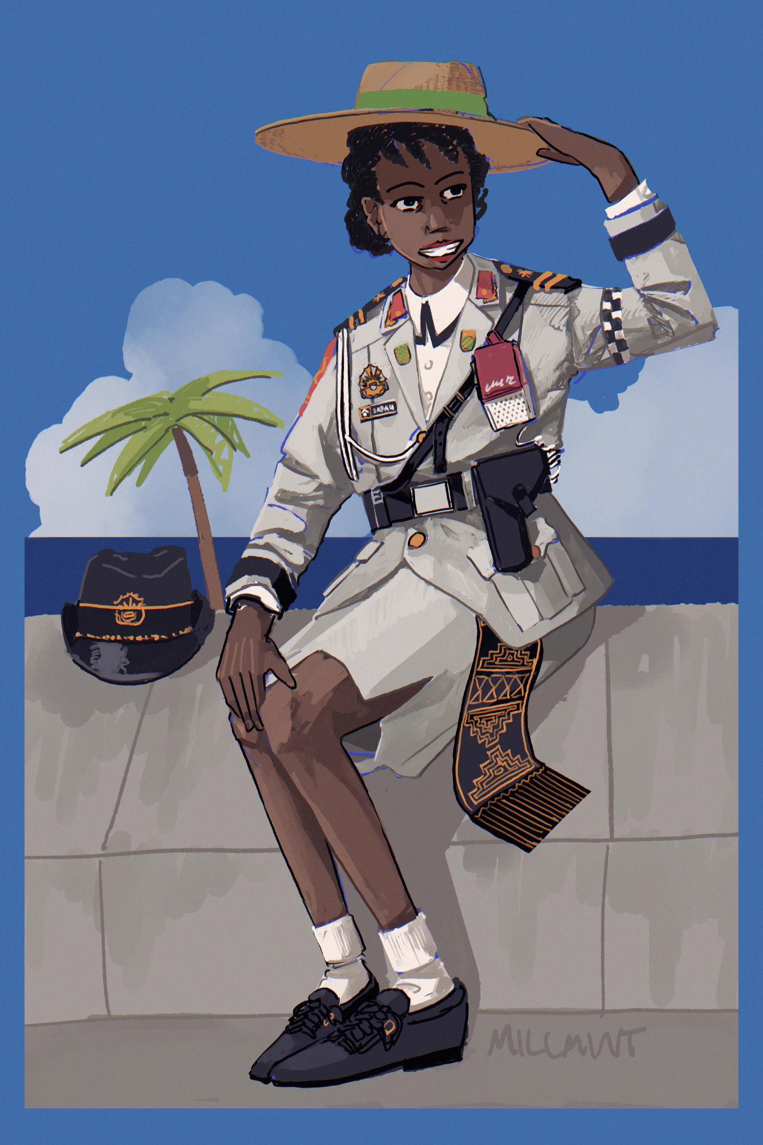 They actually do have proper sunhats, she just forgot hers. Her badge indicates she’s from the Grenadines, which is a constituent republic of Vekllei.