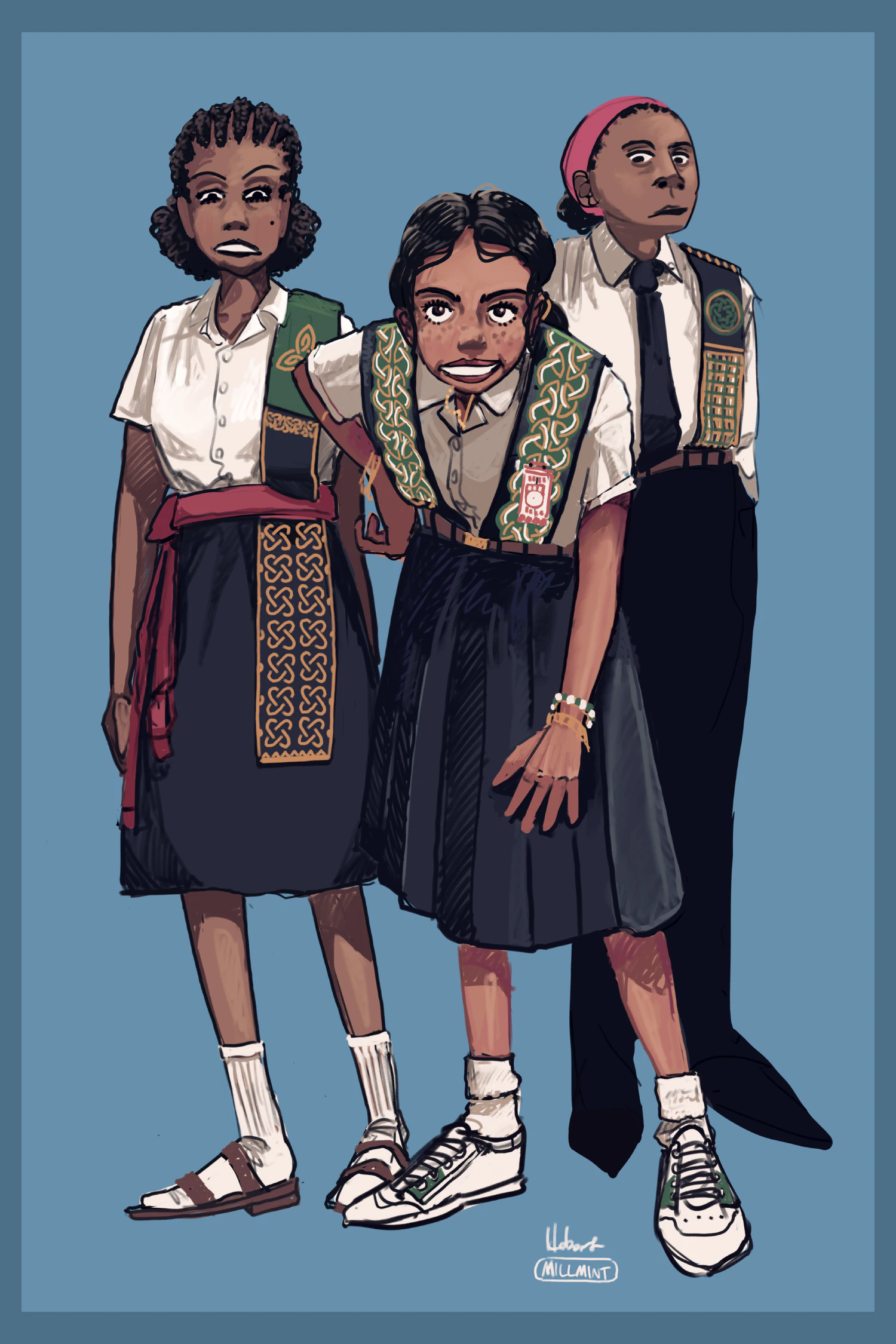 Their uniforms are assembled off the rack from department stores. While all of Vekllei uses navy and white, cultural items vary their appearance dramatically and there are no restrictions on hair or jewellery.