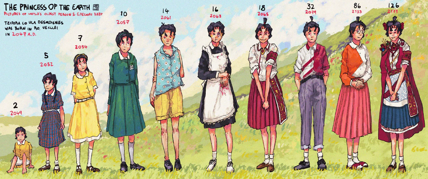 Much older, and a little wiser, Tzipora has had decades to reconcile her extended stay on Earth with the seeming immortality of the Vekllei cultural landscape. She still lives in Montre-Lola as a maternal root of the community, and resides in the little house built for her by the town over eighty years ago. For Tzipora, her sense of time has slowed to a crawl. A creature of routine, life around her goes on despite it all — the atomic war, the rebuilding, the stresses of a post-war world. A lot of her life is boring. She doesn’t mind. She finds great pleasure in the mundane, and her body is young and healthy. There are always reasons to live, and not just for the people in her life — after all, novels continue to be written and her plants need to be watered. Absorbed in her pleasant little life, it barely occurs to her that next year she will become the oldest living human being in history.