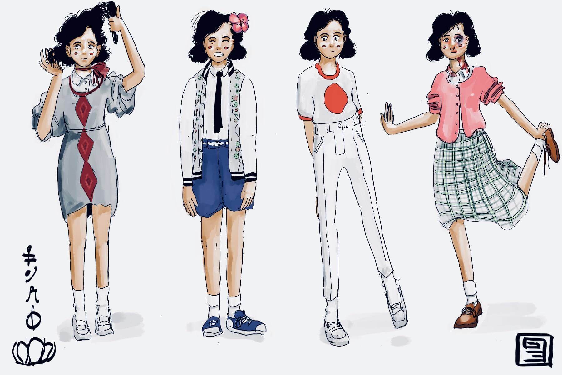 Vekllei kids look to America as a bastion of good taste; a country of fast cars and diners and sock-hops and high-school romance. Like the Koreans look to Japanese taste, and the British look to the stuff coming out of design houses in France, Vekllei is infatuated with how Americans dress in the year 2063. Like most imported culture in Vekllei, the American teen-age style is misunderstood, butchered, and then transformed into something entirely different as production lines crank out plaid skirts, two-tone shoes and baseball jerseys for Vekllei kids.