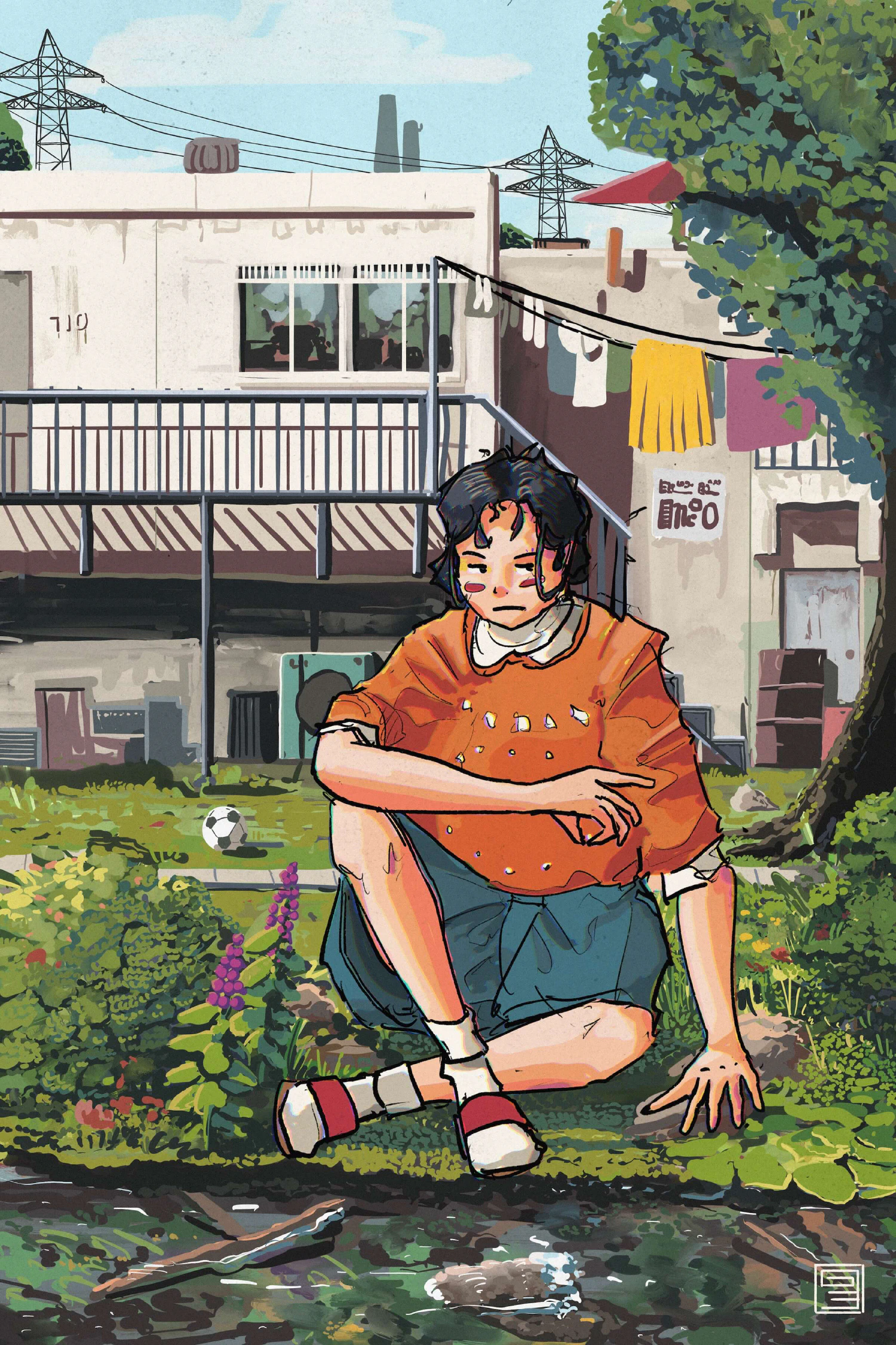 She would spend a long time by the rivulet that ran behind her apartment. She would do the housework and hang the wash out, then watch the water trickle past in the sun.