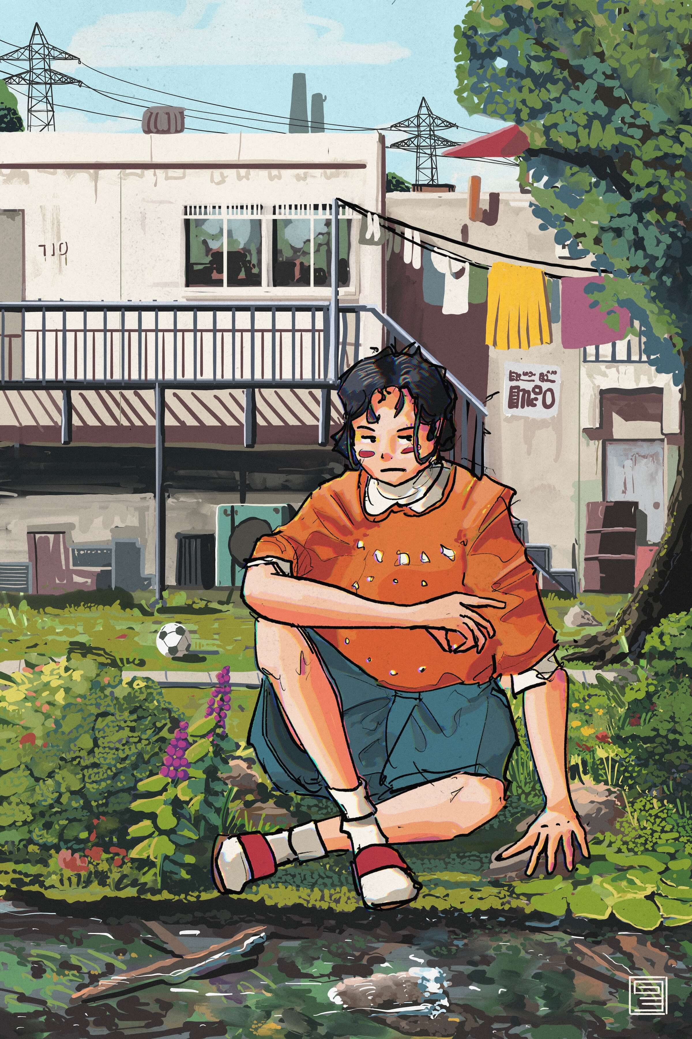 She would spend a long time by the rivulet that ran behind her apartment. She would do the housework and hang the wash out, then watch the water trickle past in the sun.