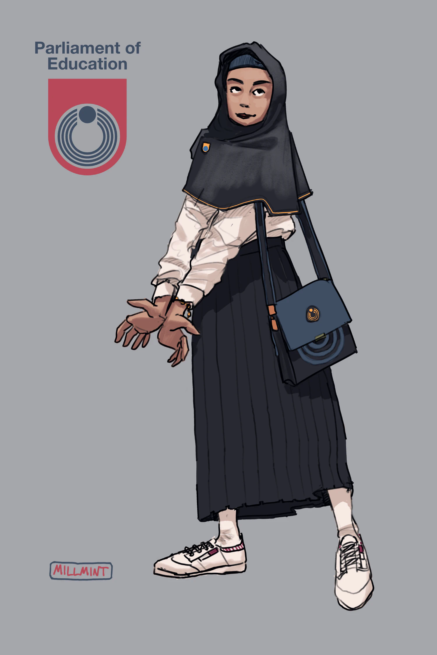 Revision of the Vekllei school uniform hijab. It now fastens with a school crest pin.