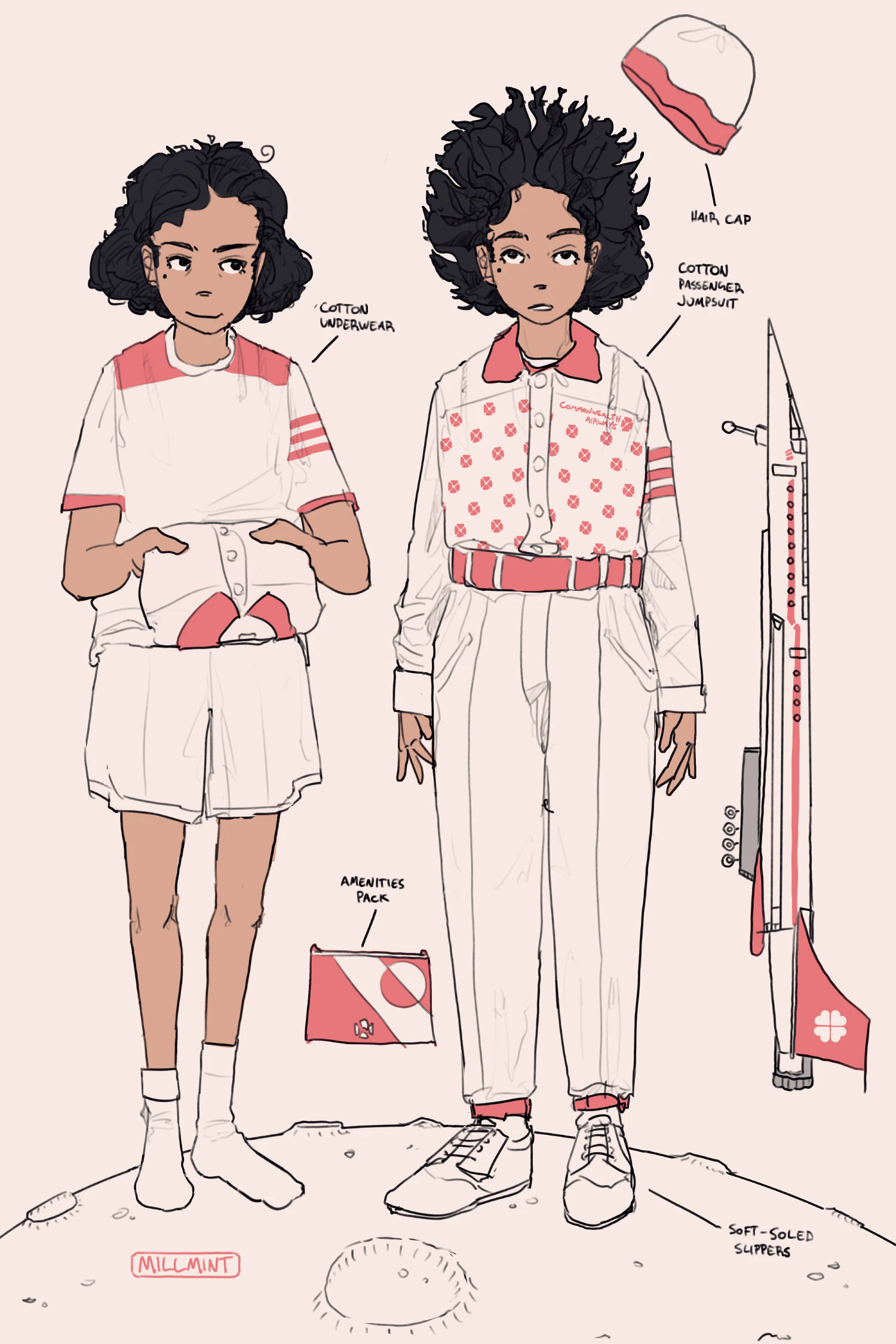 Commonwealth Airways gives you a cotton jumpsuit and slippers for the trip so you don’t take someone’s eye out with your shoe in zero gravity.