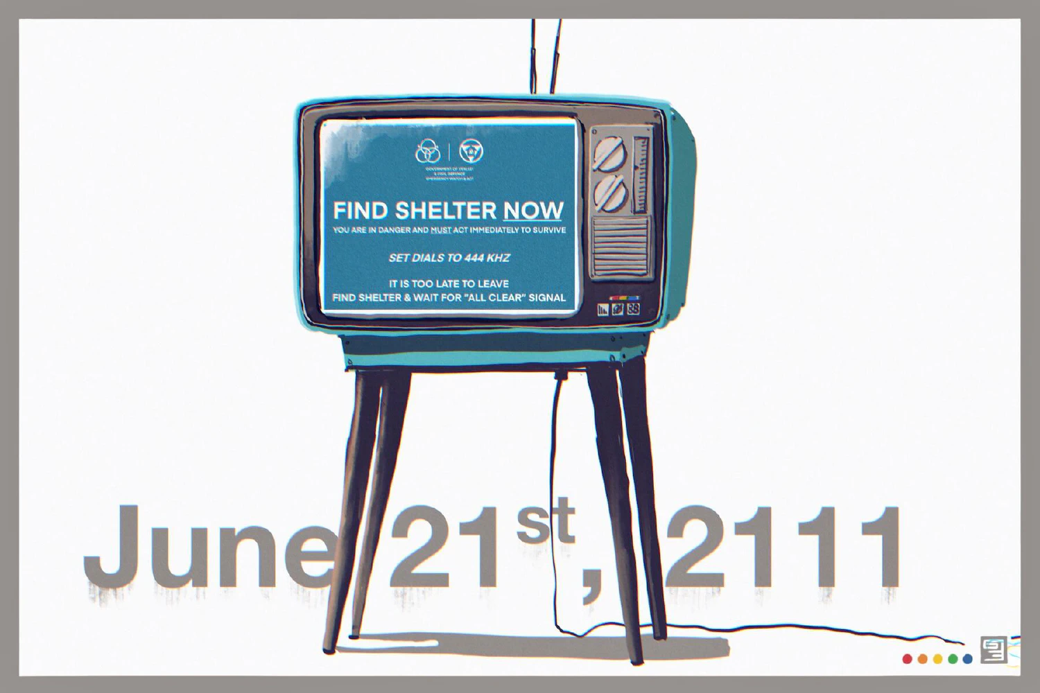 HEAR THIS — THIS IS CIVIL DEFENCE — THIS IS NOT AN EXERCISE. THIS COUNTRY IS UNDER NUCLEAR ATTACK. STAY TUNED TO THIS WAVELENGTH AT 444 KHZ.