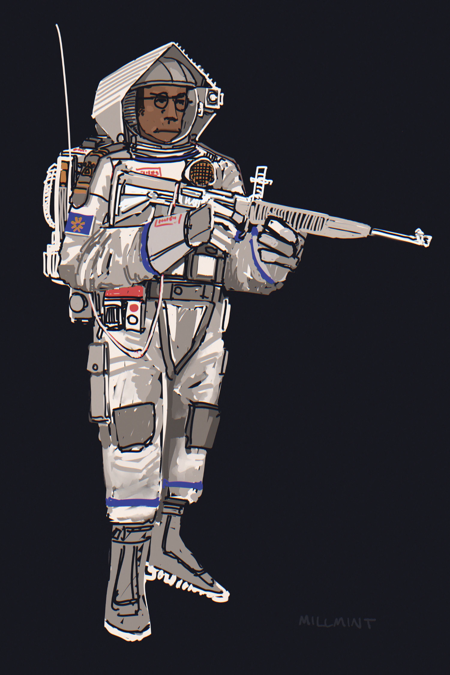 This guy is part of the Commonwealth Patrol Service, the same agency that patrols Vekllei borders on earth. They carry larger chrome and bakelite rifles.