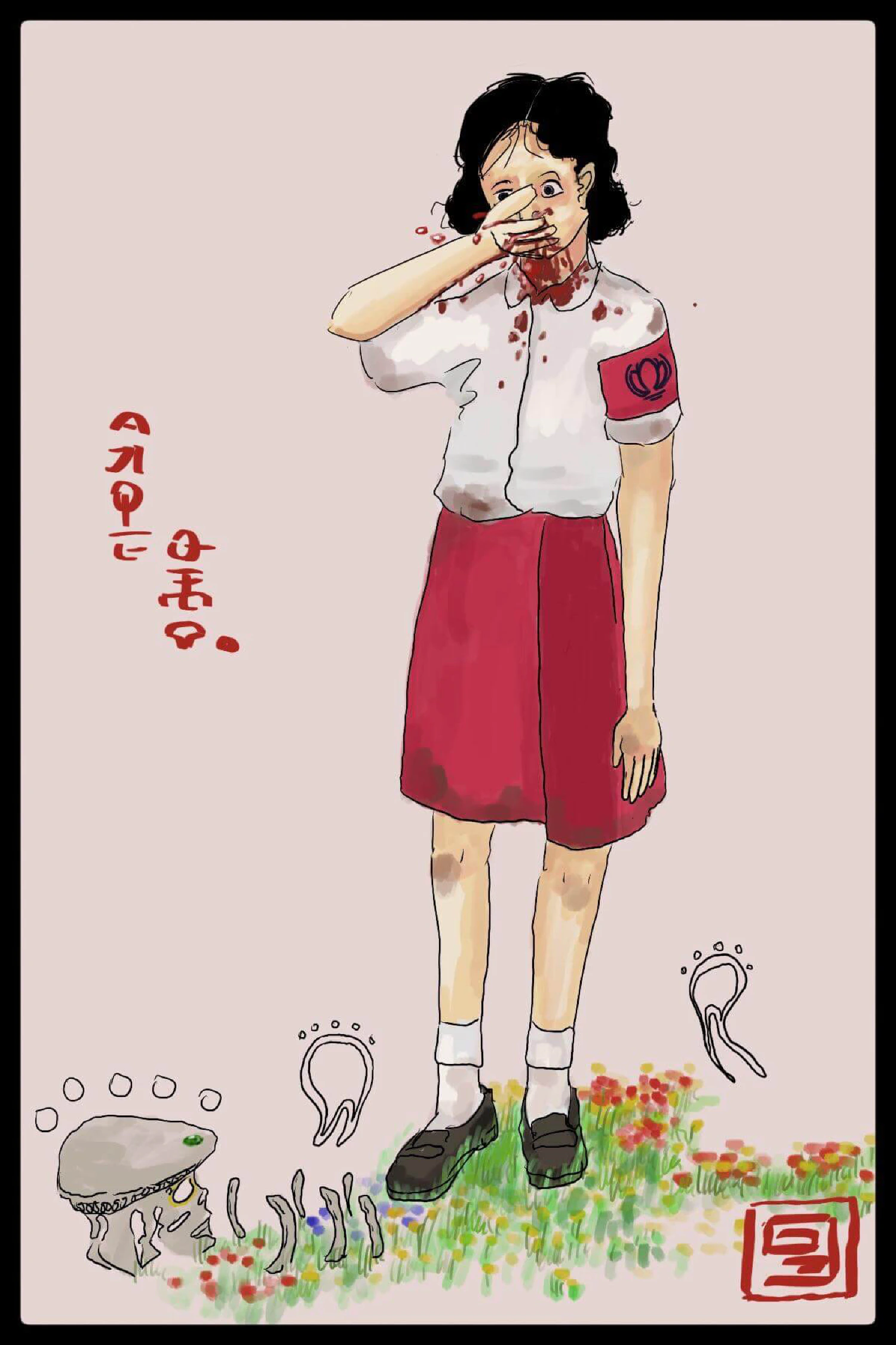 She saw its bones and the sight of them β that they were real and not a dream β caught in her throat. She raised her hand to cough, and suddenly her lungs heaved and blood began to pour from the spaces between her fingers. Her eyes grew wide and she cupped her hand, and she retched again and her blood sprayed out like a hose. It soaked her, but she stayed steady.