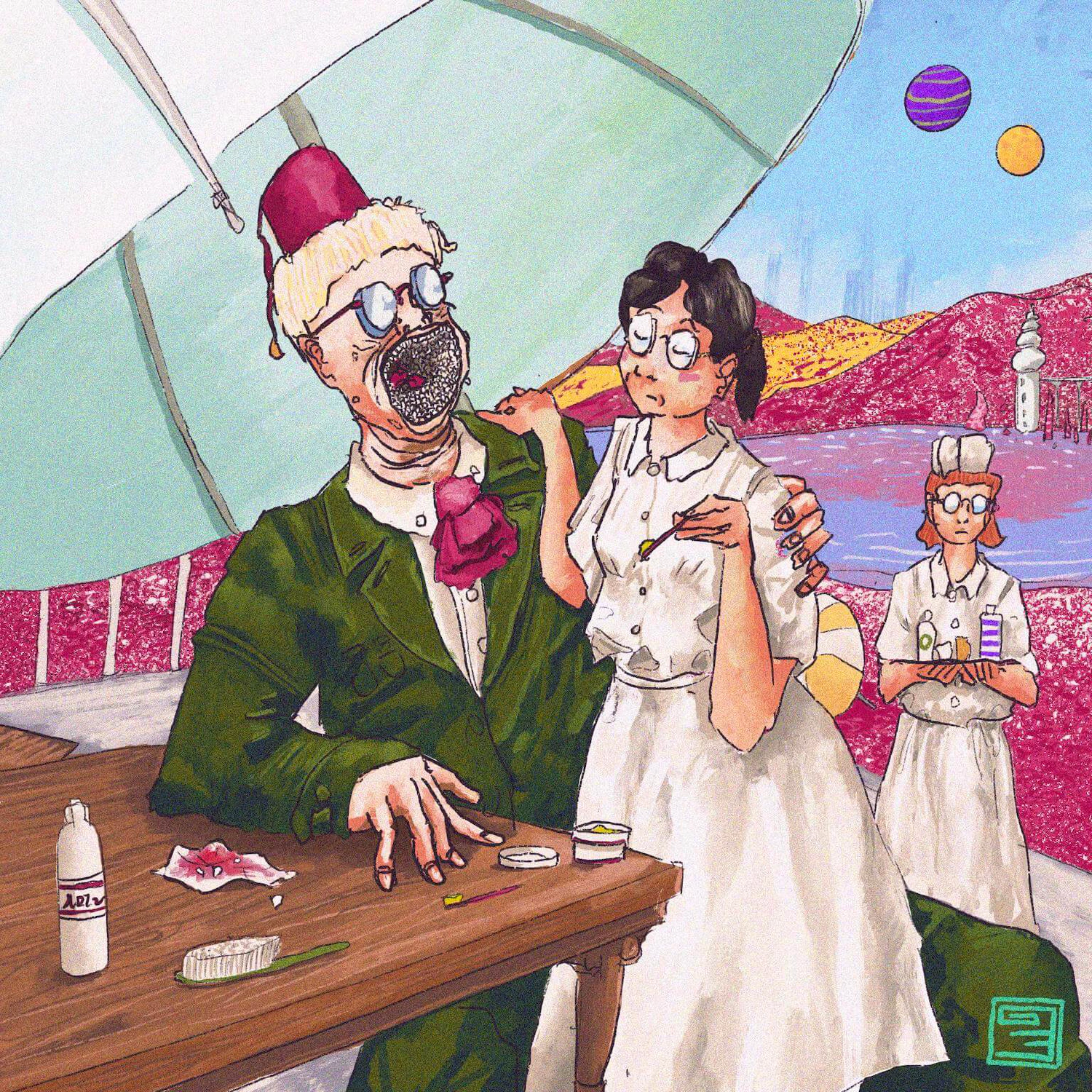 Total hedonism across a thousand generations produced the creature known as the ‘tooth regent’, who was a human by technicality but was built genetically only for consuming. His name was Arhen CIII, and where his ancestors had mouths, he had a thousand teeth that sat in messy rows to the back of his throat.