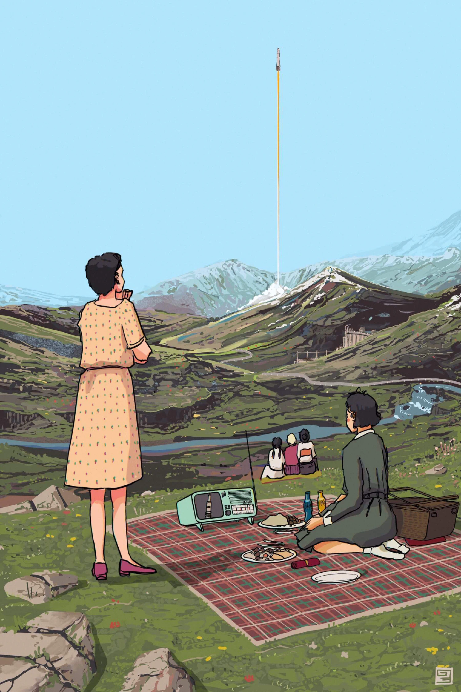 Although it was nearly midnight, it was the Solstice and the sun would not set tonight. Ayn and Tzipora had spread out plates of Vekllei Kimisosyo stew across a blanket just south of the Lita Cosmodrome to watch the launch. The Royal Borough of Lita was not far from Copette (map of Vekllei here), one of the Five Crown Boroughs of Vekllei, but this was Vekllei’s glacial interior and it felt a million miles from anywhere. Its geography was ancient and violent, strikingly barren and brutally volcanic. Why visit Europa? It was alien enough here.