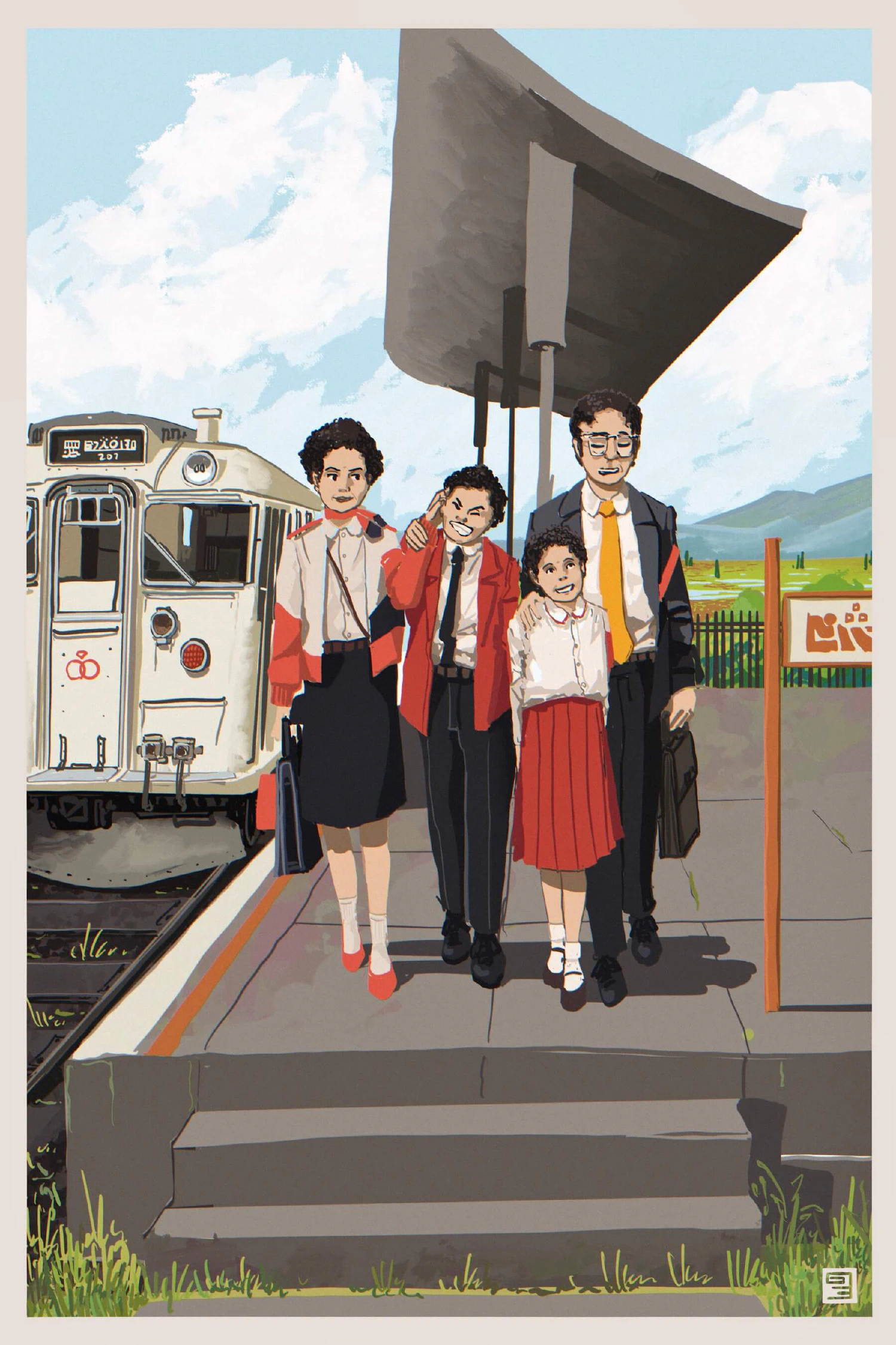 The Tzefesmiousn family in the borough of Kotaismoyeh have their very own platform โ theyโre the only ones with a house here. Thereโs a couple of farms nearby, which load wool and meat onto freight trams periodically, but otherwise theyโre the only commuters at their stop. Both parents work for Vekllei National Rail โ Tzafi is a platform attendant and Aleph is an engineer. The kids go to school in the town of Kotaismoyeh. Their lives are entwined with rail, and their home is serviced by their station.
