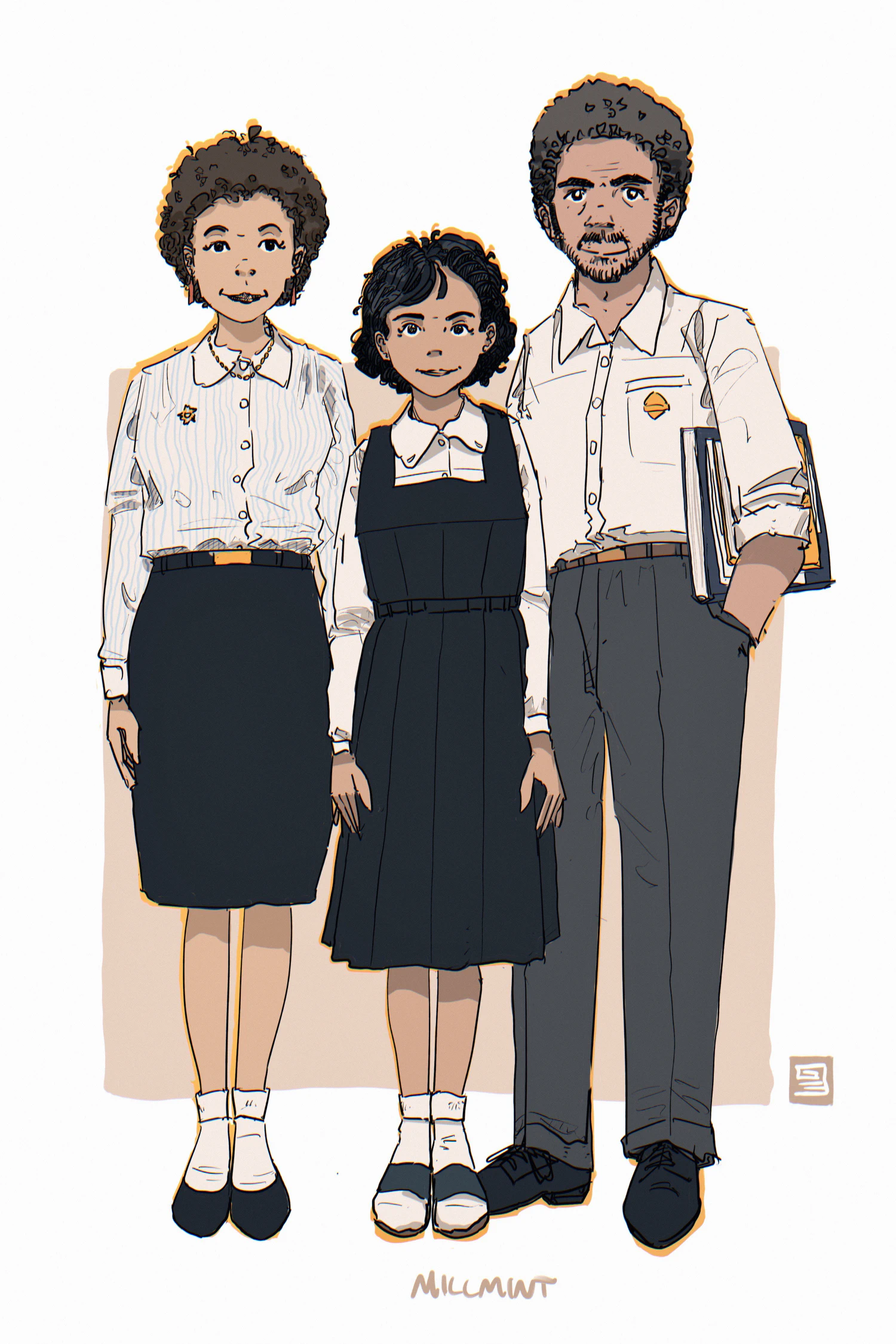 I based Kowalczyk off Steve Gadd, my favourite session drummer of all time, and Ninčić off a woman who sold me a bus ticket in croatia, who had this wild curly hair afro but looked Slavic. It’s also an example of teachers wearing similar uniforms (in their case, more of a dress code) to students.