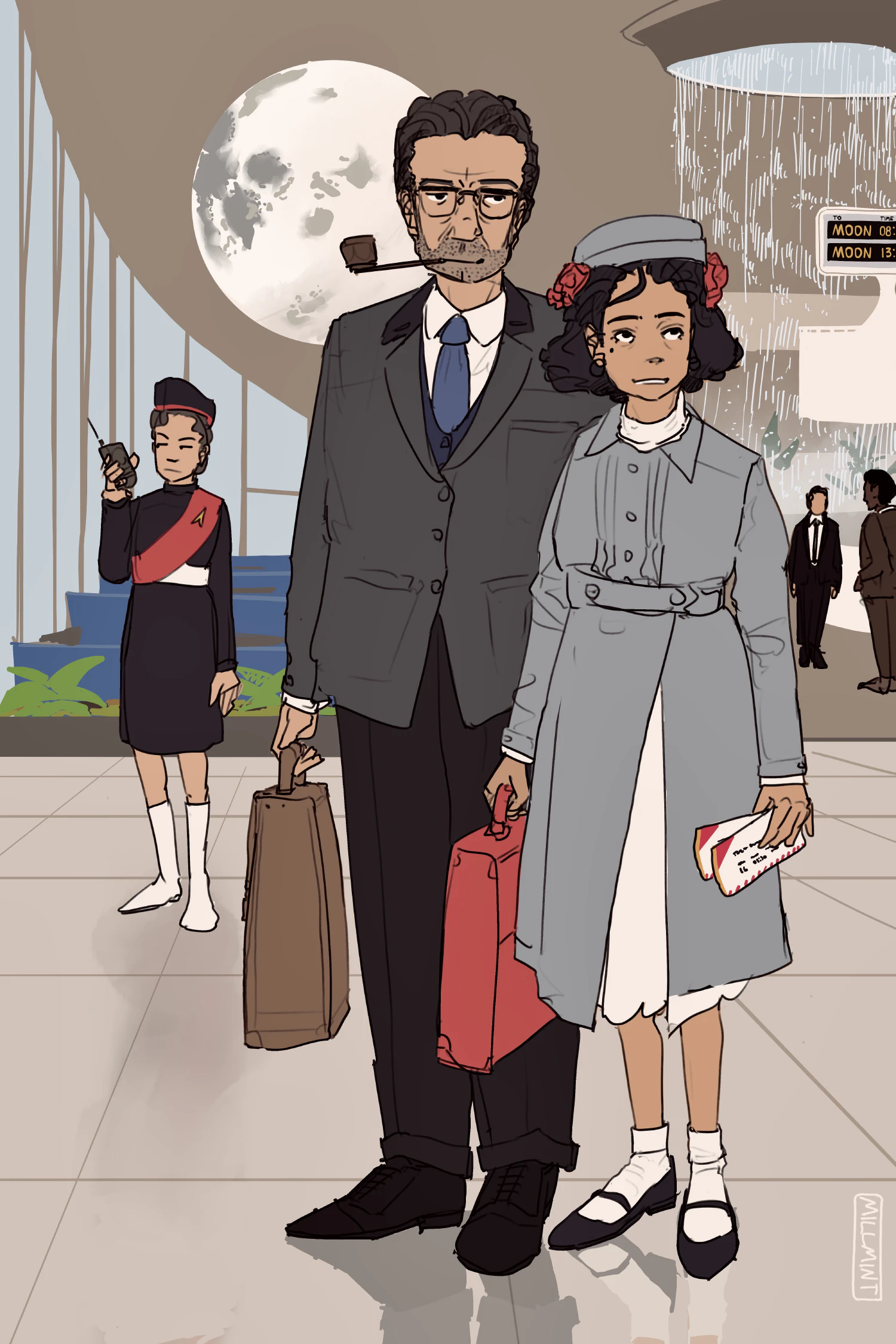 Travel to the moon is a whole process — you have to fly to the astroport on Ascension, attend the flight briefing and have a medical checkup. Eventually, Tzipora and Baron are on Commonwealth Starlines Flight 1 to the moon.
