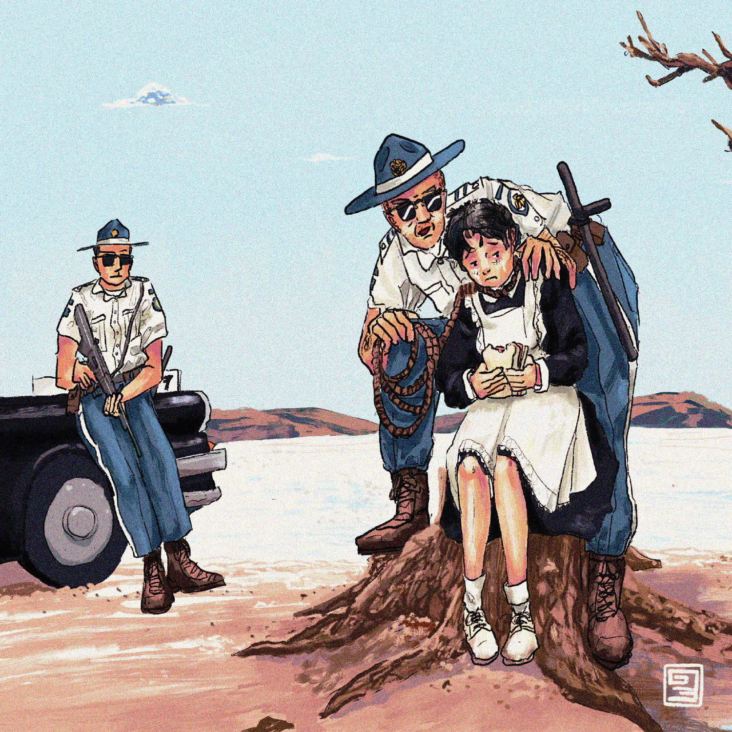 This girl did not have a last name, because she was some immigrant worker with a fake visa worth less than her shitty hand-me-down rayon uniform. She knew what was coming in the back of the police cruiser and started to tremble uncontrollably as they left the highway. An immigrant expects what happens to immigrants. They pulled up by a stump and a small patch of dead ashes that were visible from the highway that crossed the flats. Would they take a picture of her for a postcard? She didn’t want that. Who would cut her down? Would they bury her? Suddenly the finality of it hit her — who, at all, would remember her?