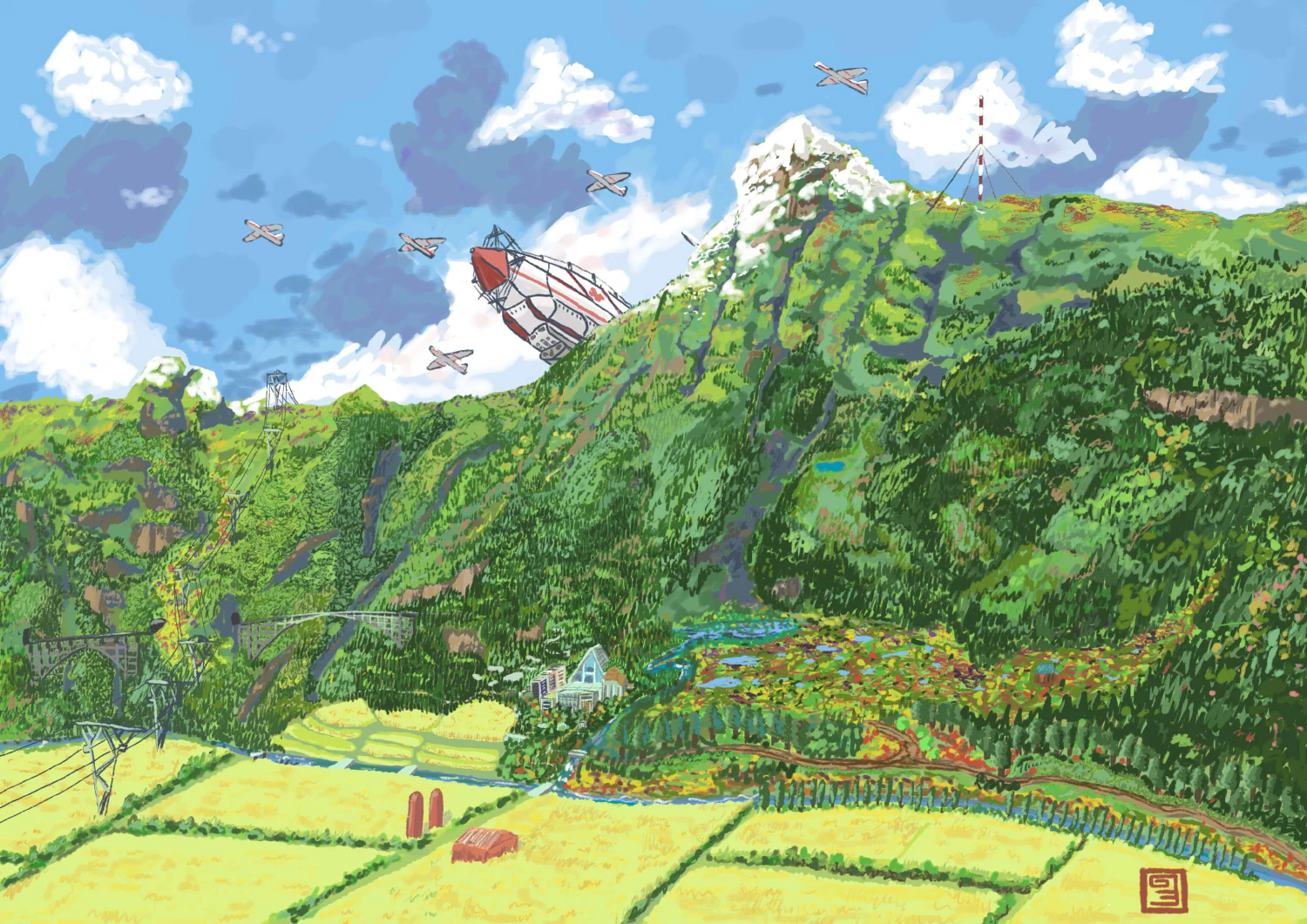 This year, in usual preparation for the Festival of the Atom, the airship Dumoustra joins a fleet of jet bombers as they rendezvous with the 3rd and 5th Escort squadrons from the coast. They soar dramatically over the ribs of the North Vekllei tectonic mountain ranges, briefly roaring over the quiet farming valleys one by one as peaks pass below them.