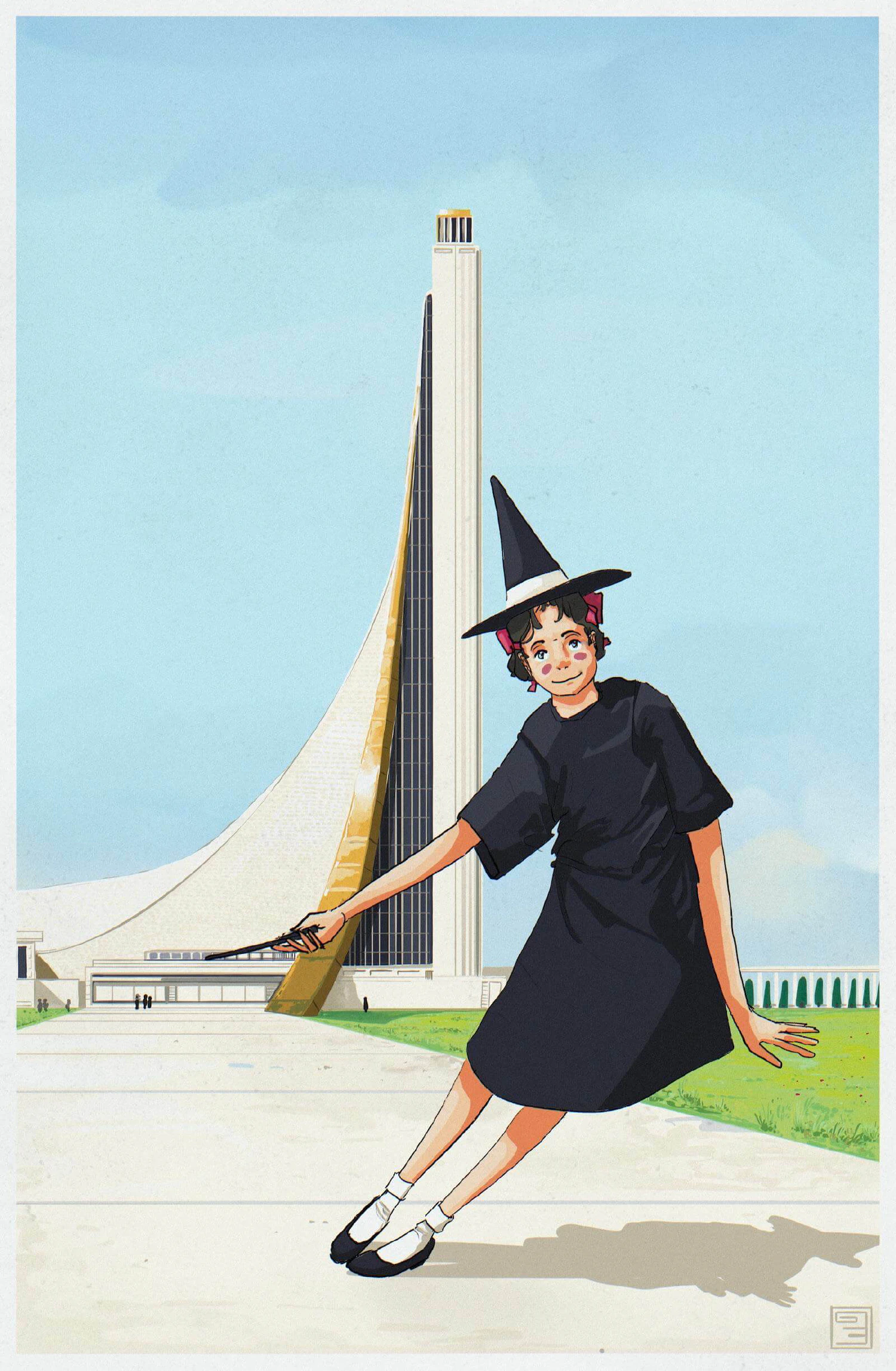 You can see her here attempting to recreate the sumptuous curve of the Meeting Hall in witch form.